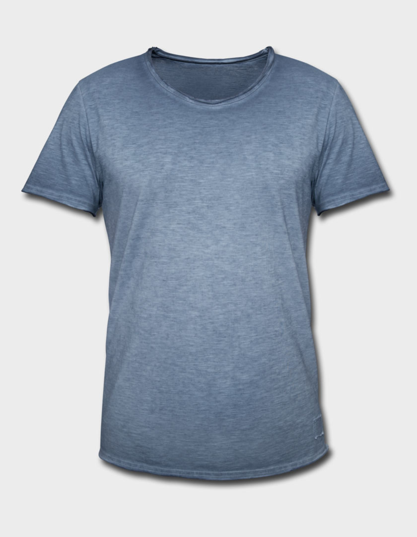 Eintönigkeit ade: Mit seinen interessanten Farbverläufen ist dieses T-Shirt aus geflammtem Baumwolljersey schon unbedruckt ein Statement. Ein aufgenähtes Patch und offene Rollsäume machen den detailverliebten Used Look perfekt.